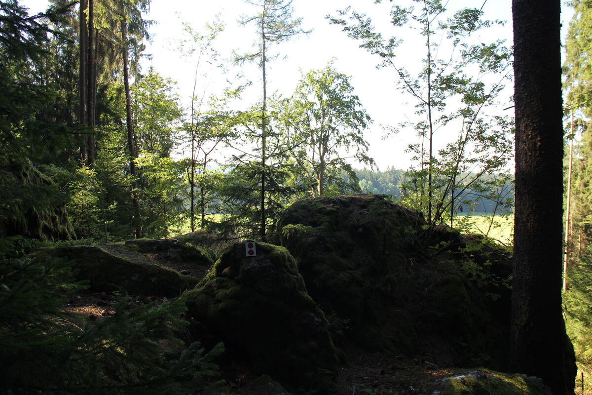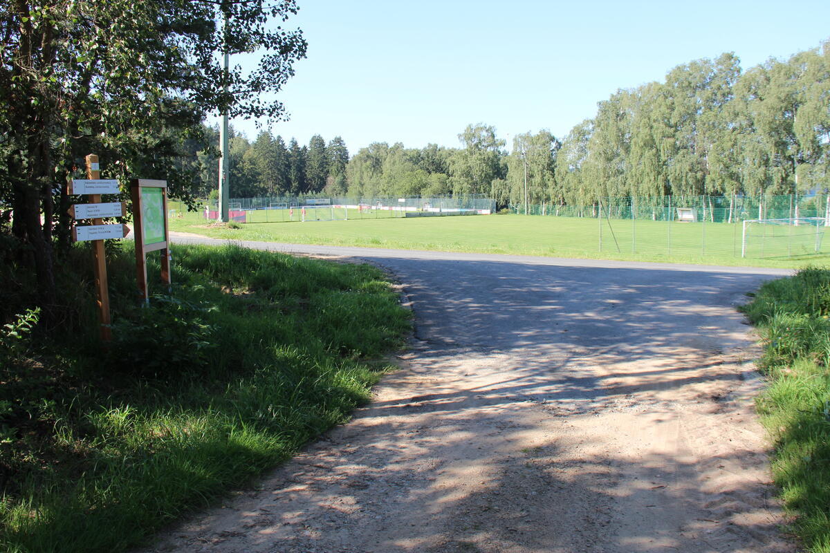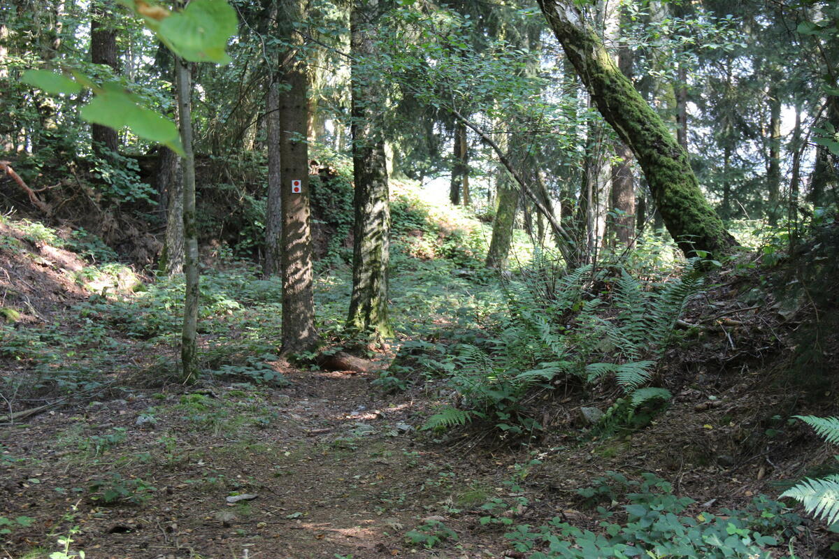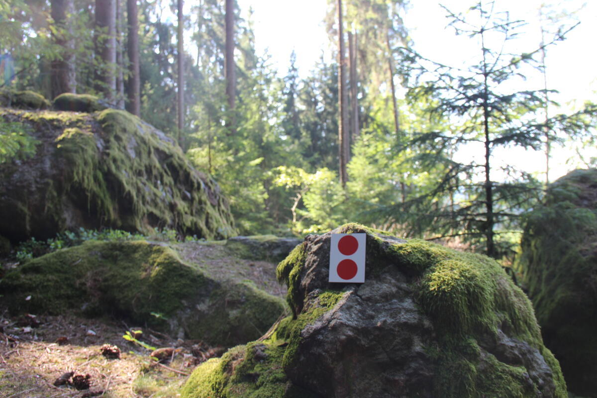 Damit man immer den richtigen Weg findet, wurde dieser mit 2 roten Punkten auf dem ganzen Gelände markiert.
